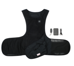 Les éléments chauffants intégrés sur la poitrine et le dos diffusent une chaleur de longue durée sur simple pression d’un bouton.