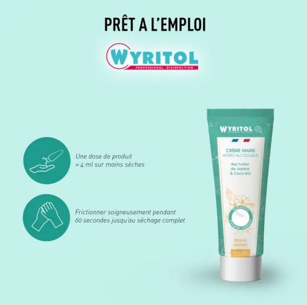 Crème hydro-alcoolique pour la désinfection et le soin des mains
