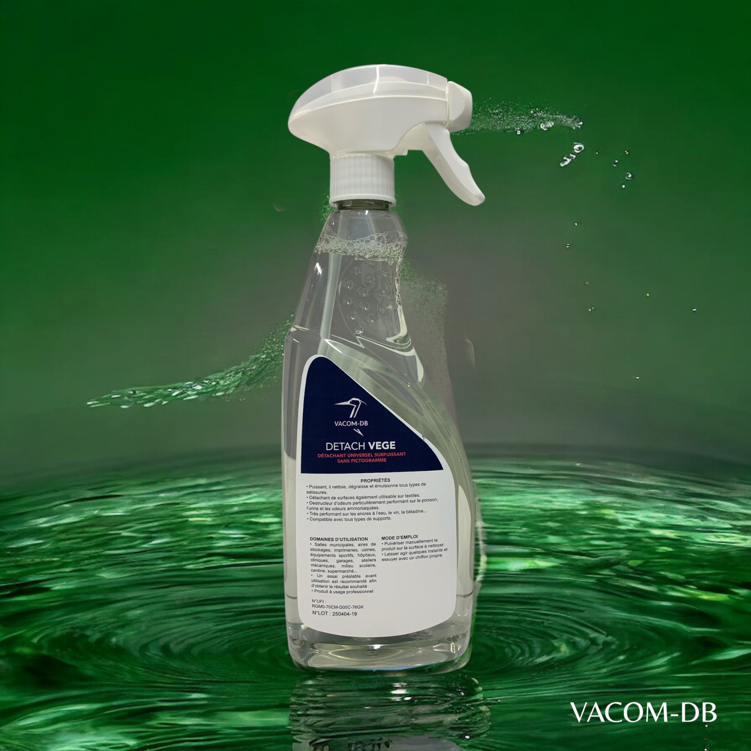 NETTOYANT MULTI-USAGES AU RICIN PAE, destructeur d’odeur de poisson, urine et ammoniaquées. Ce DETACH VEGE est puissant, il nettoie, dégraisse et émulsionne tous types de salissures. C’est un détachant de surfaces également utilisable sur le textile, ce produit est très performant sur les encres à l’eau, le vin, la bétadine et est compatible avec tous types de supports