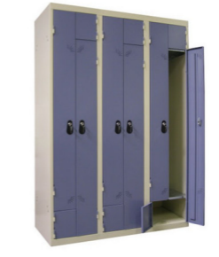 Vestiaire de construction métallique monobloc, constitué de 2 portes en Z ou L concentrées sur une largeur de 400 mm.