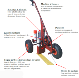 La version « tous terrains » permet de tracer sur un support dégradé ou tracer des lignes sur des terrains de sport engazonnés.